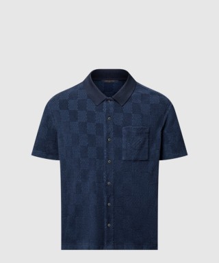 [GUCCI-구찌]다미에 프렌치 테리 쇼트 슬리브드 코튼 블렌드 셔츠 1AGK5