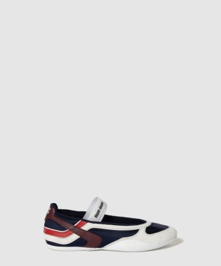 [MIUMIU-미우미우]체육관 기술 패브릭과 스웨이드 발레리나 5F427E