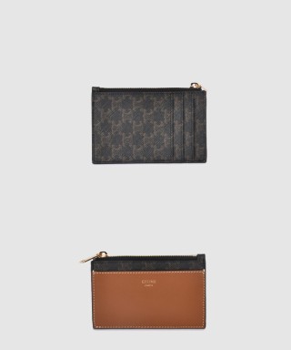 [CELINE-셀린느]지퍼 카드 지갑 트리옹프 캔버스 램스킨 10F992