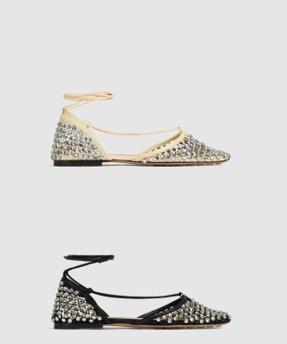 [BOTTEGA-보테가베네타]스파클 스트레치 레이스업 플랫 샌들 740007