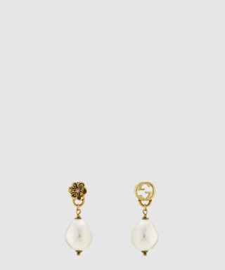 [GUCCI-구찌]인터로킹 G 플라워 펄 귀걸이 661127