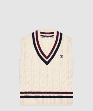 [CELINE-셀린느]트리옹프 V넥 케이블 니트 캐시미어 RY0BMD